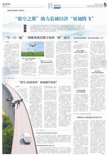 低空经济正成为赋能县域经济高质量发展的新引擎,不仅为推动农业数字化转型注入强劲动力,更是发展农业新质生产力的重要切入点。依托低空飞行器、智能感知等技术,智慧农业、物流配送、应急服务等新场景在县域加速落地,激发新业态、带动产业链重构。各地积极探索“技术 场景 资源”融合路径,把低空经济嵌入乡村振兴和产业升级全链条,加快发展数字农业,因地制宜打造低空多场景应用,为县域经济注入持续蝶变、加速跃升的澎湃动能。