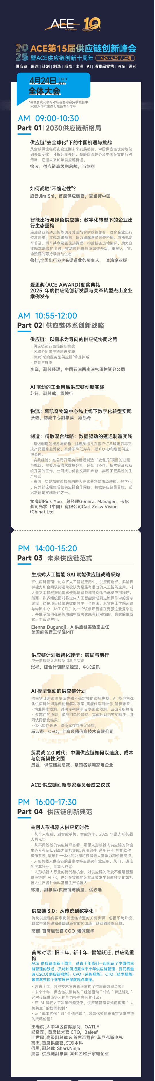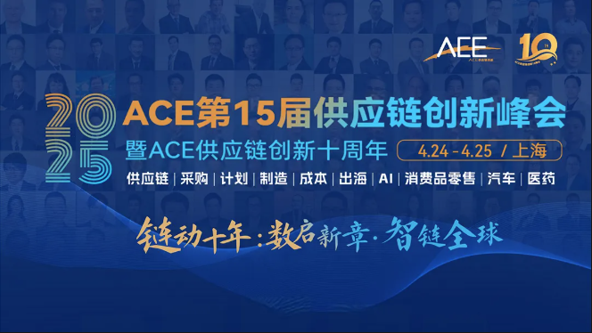 2025年4月24日-4月25日(周四、周五),ace2025第十五届供应链创新峰会暨ace供应链创新十周年创新周(简称“ace2025”)将在 上海 盛大开启!