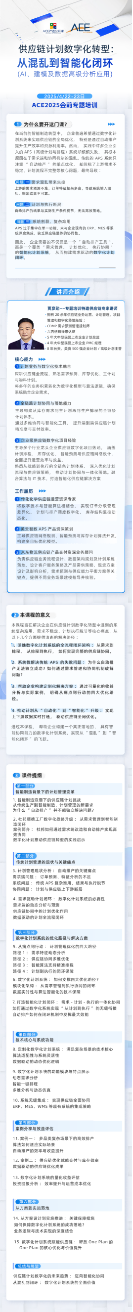 4月22-23日会前培训《供应链计划数字化转型(ai、建模及数据高级分析应用):从混乱到智能化闭环》
