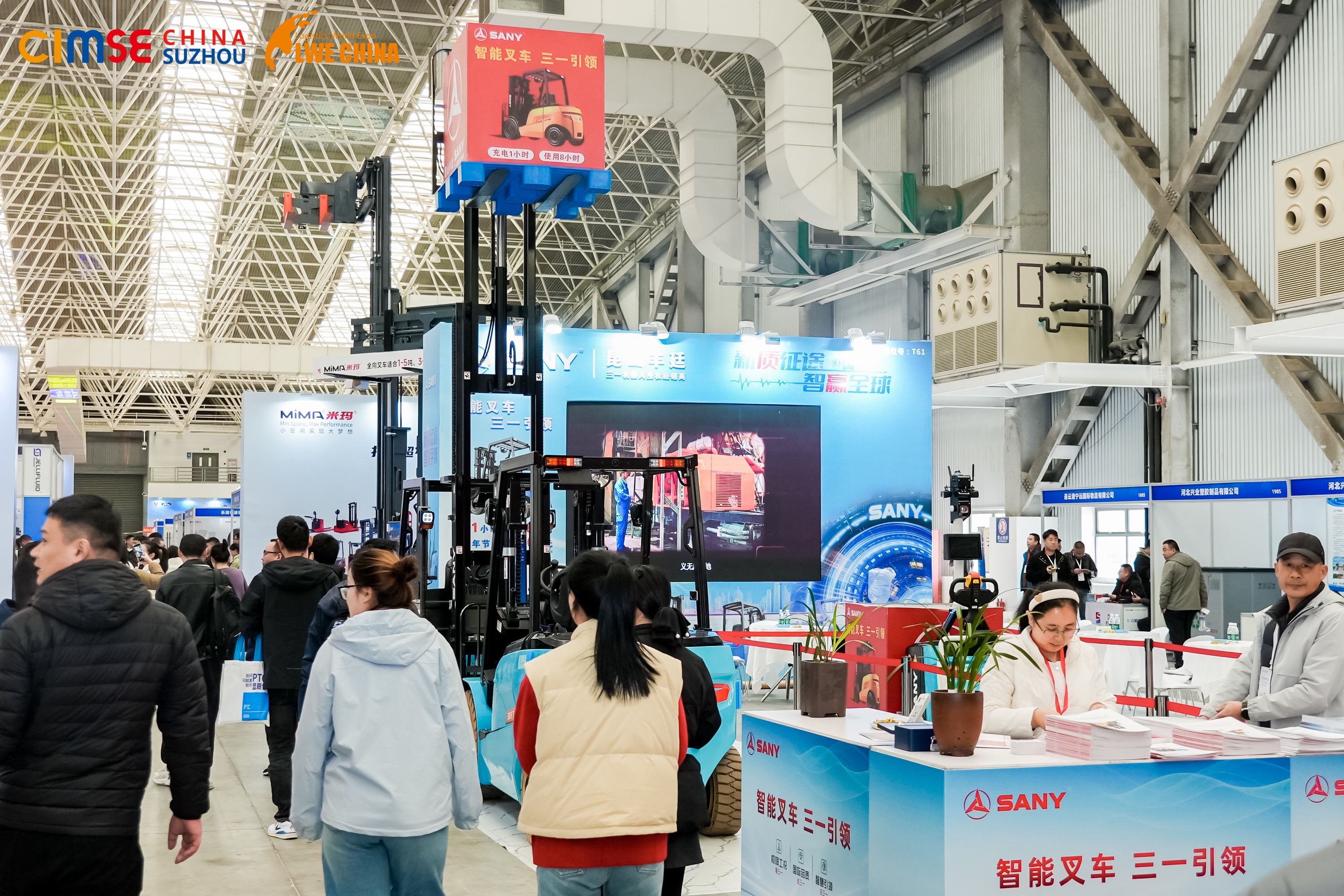 开幕首日,三一、徐工、林德、诺力、江铃、江淮、江苏中元、搬易通等行业领军企业悉数亮相,以 “星河汇聚” 之势呈现了一场科技盛宴。参展展品涵盖智能仓储设备、新能源物流车、无人搬运系统、数字化管理平台等全产业链核心装备与技术,既凝聚了行业匠心,更浓缩了创新智慧,直观展现了物流行业向高端化、智能化、绿色化转型的坚定方向与显著成果,为现场观众带来沉浸式的科技体验。