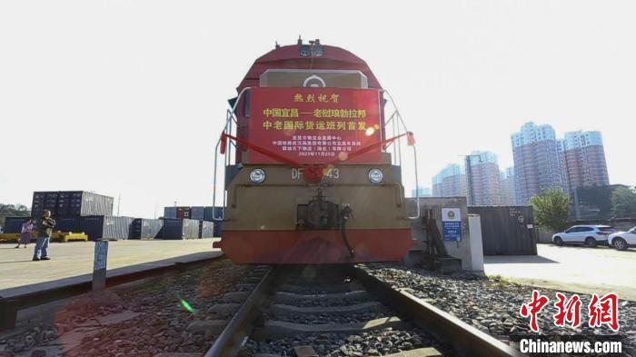 “三峡门户”湖北宜昌首开中老铁路货运列车。夏和源摄