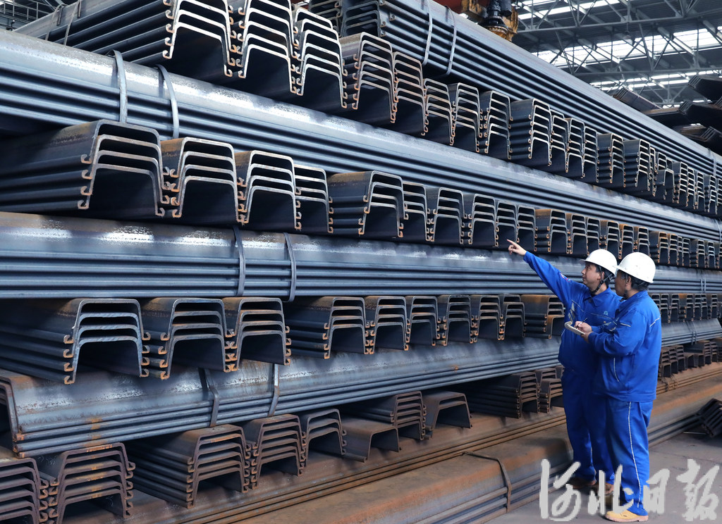 9月2日,河北津西钢铁集团股份有限公司型钢二厂钢板桩生产车间,员工正在检测钢板桩产品 。 河北日报记者 李巍摄