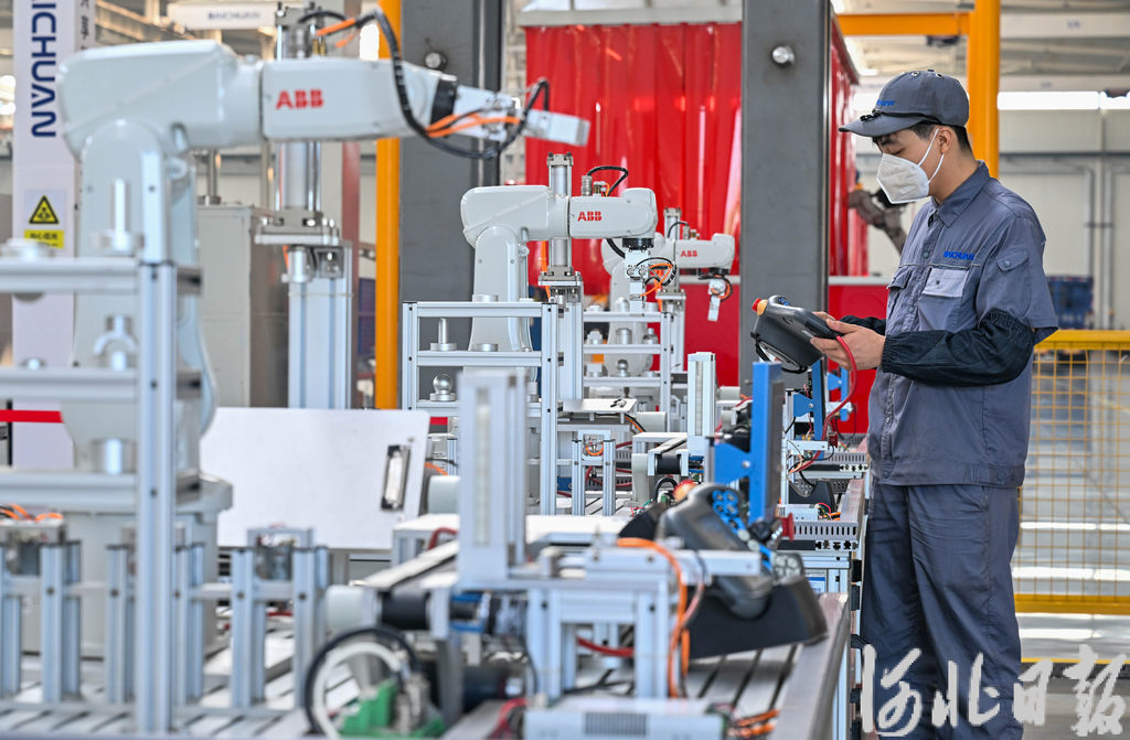 在唐山百川机器人共享工厂,工作人员正在调试机器设备。河北日报资料片