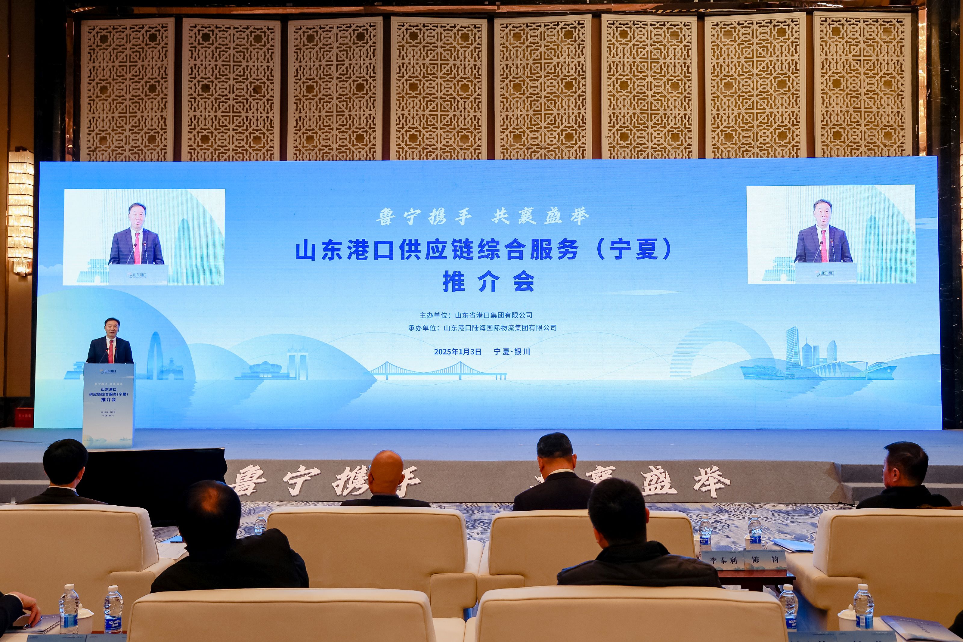 鲁宁携手,共襄盛举。1月3日,山东港口供应链综合服务(宁夏)推介会在银川举行。这是山东港口2025年首场供应链综合服务推介会,旨在加快构建鲁宁跨区域产业链供应链,更好服务宁夏企业发展,助力构建国际物流大通道、开创区域协调发展新格局。