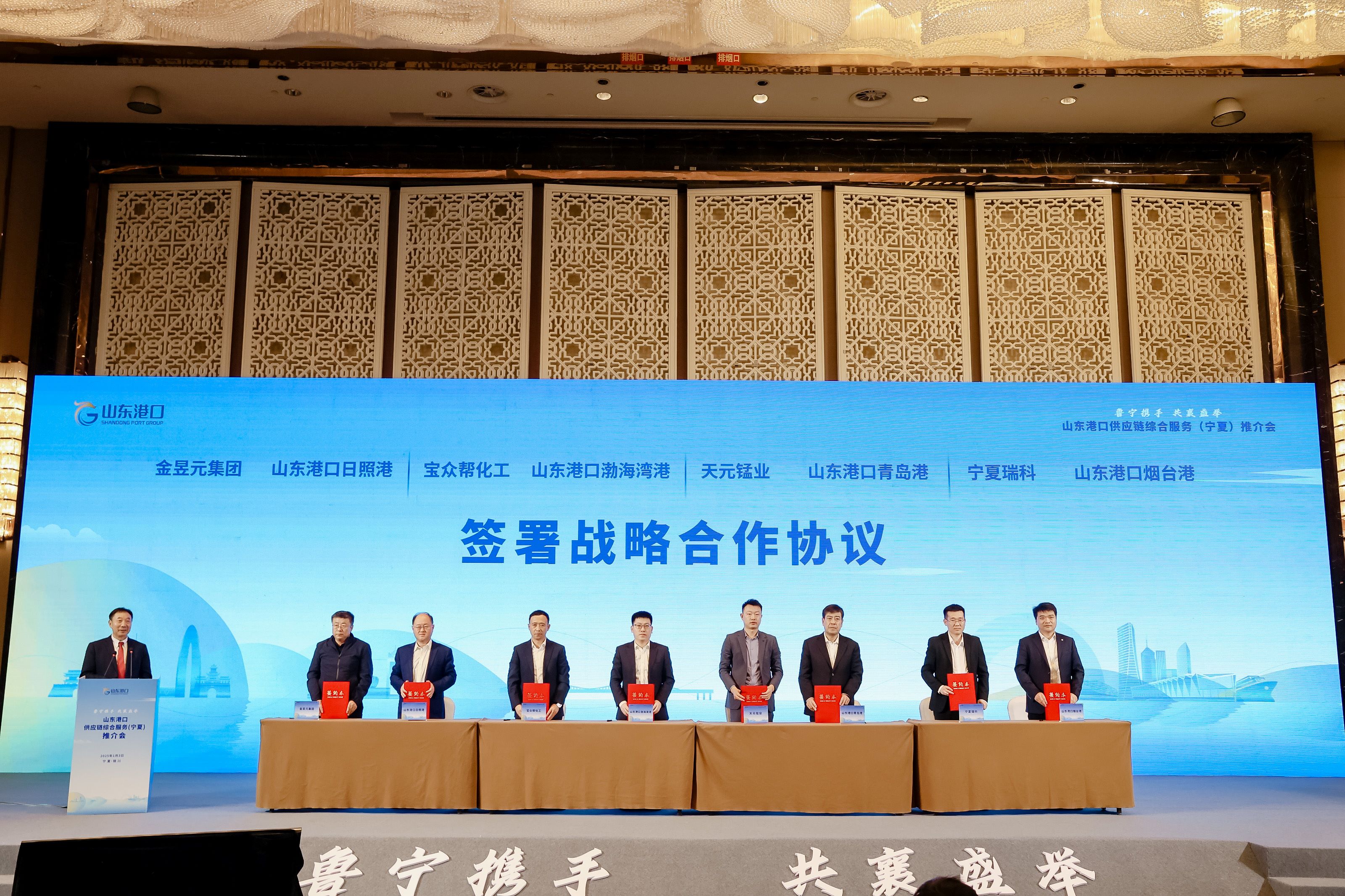 会上,山东港口相关直属单位进行了业务推介。签约环节中,山东港口“三大赛道”有关单位与宁夏天元锰业物流集团、宁夏金昱元化工集团、宁夏瑞科能源集团、宁夏宝众帮化工、中外运(宁夏)物流、宁夏冷凉蔬菜产业联合会、宁夏大地、宁夏宁鲁石化、银川创新发展投资集团、宁夏梦驼铃科技、宁夏中旅签署战略合作协议,各方将携手共建国际物流大通道,更好推动黄河流域“东西互济,陆海联动”,共创鲁宁合作发展美好未来。