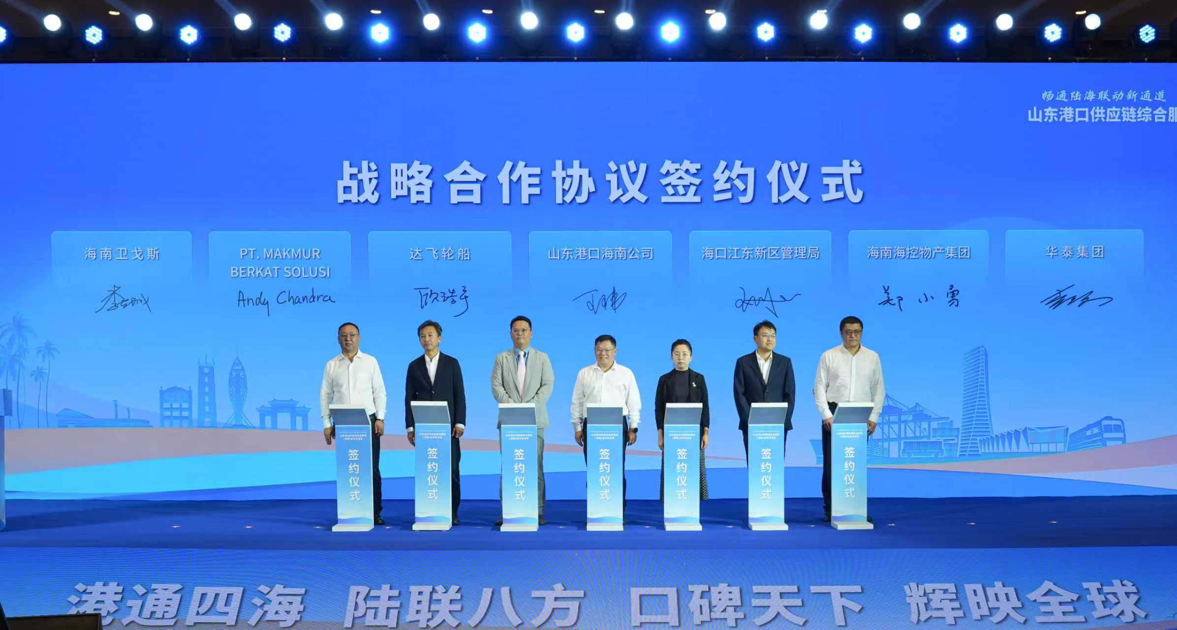 根据海南产业发展需求和政策优势,山东港口将进一步完善港航协同、现代物流、国际贸易、供应链金融等全要素、全流程“工具包”,为广大客户定制高品质、高附加值的综合服务。会上,山东港口推介供应链综合服务体系,青岛港、烟台港、投控集团、山东远洋、贸易集团、海外发展集团分别进行业务推介,集中展示山东港口“一站式”“一体化”的供应链综合服务能力。