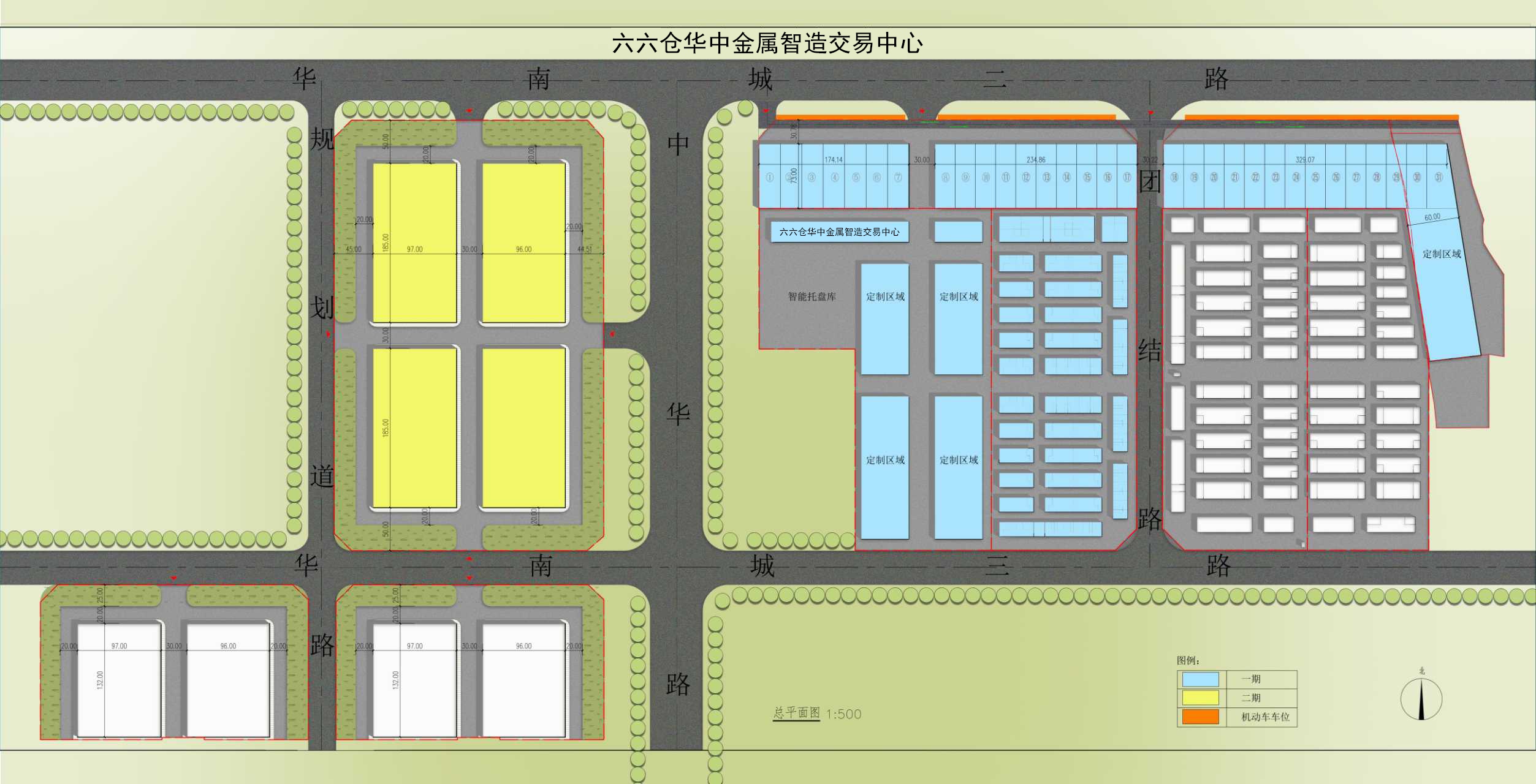 项目总体位于新郑市南龙湖的华南城区域内,由“六六仓(郑州)园区管理有限公司”投资建设。一期的370亩位于中华路以东,华南城二路以南。另有100亩在华南城大道与创新路交叉口东北角,拟规划建设“应急消防产业园”。项目周围商业及生活配套成熟,市场南侧有地铁2号线“华南城站”。