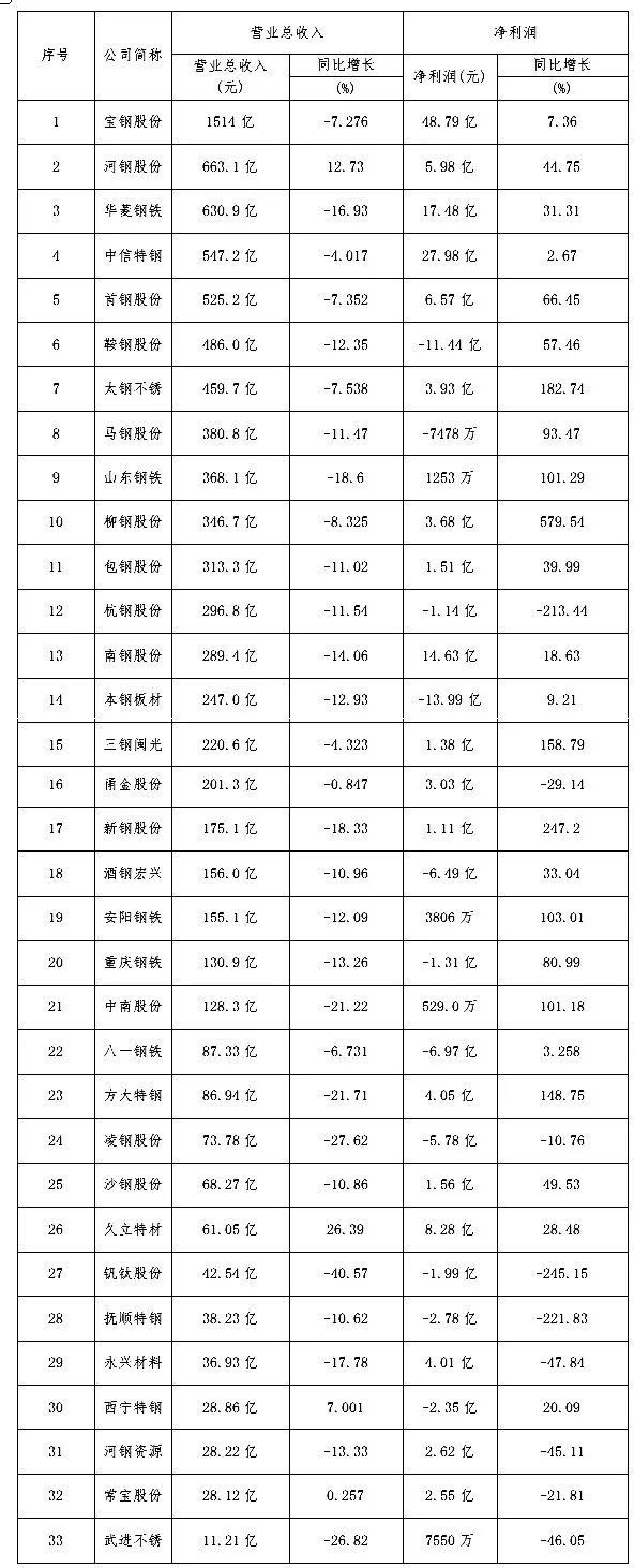 宝山钢铁股份有限公司(以下简称:宝钢股份)上半年营业总收入为1514亿元,净利润48.79亿元,两项数据均位居33家企业首位。