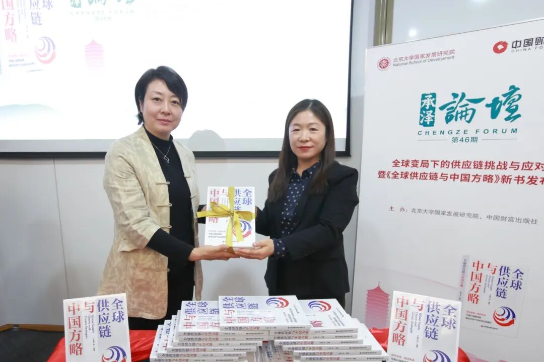 论坛尾声,中国财富出版社向北大国发院赠送了《全球供应链与中国方略》新书,旨在进一步推动该书的学术传播与实践应用。