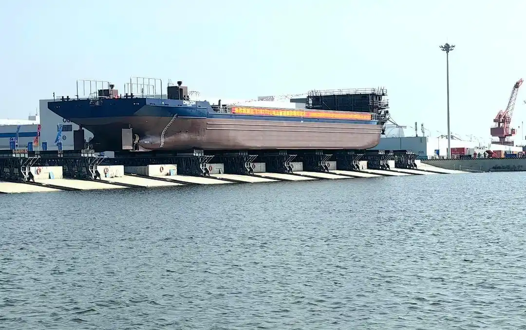 “法国达飞,182标箱,纯电动力集装箱船,正式吉水!”3月19日上午9点58分,随着一声令下,山东新能船业有限公司(以下简称“新能船业”)为世界航运巨头法国达飞海运集团建造的182teu纯电动力集装箱运输船在邹城白马河畔成功吉水。