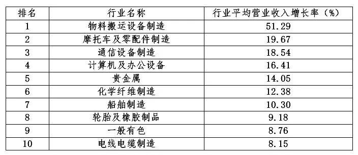 在营收方面,2025中国制造业企业500强中,物料搬运设备制造、摩托车及零配件制造、通信设备制造、计算机及办公设备、贵金属行业企业的平均营业收入增长率居于前五位。