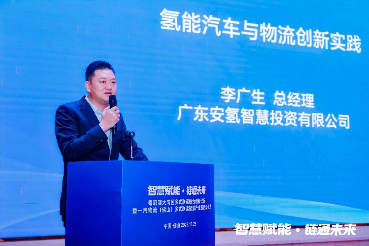 广东安氢智慧投资有限公司董事长曹龙盛在《一汽物流(佛山)多式联运智慧产业园赋能大湾区多式联运降本增效》主题演讲中提出,产业园将以智慧赋能与集成运作为核心,构建起降本增效的“智慧大脑”与“实体枢纽”。