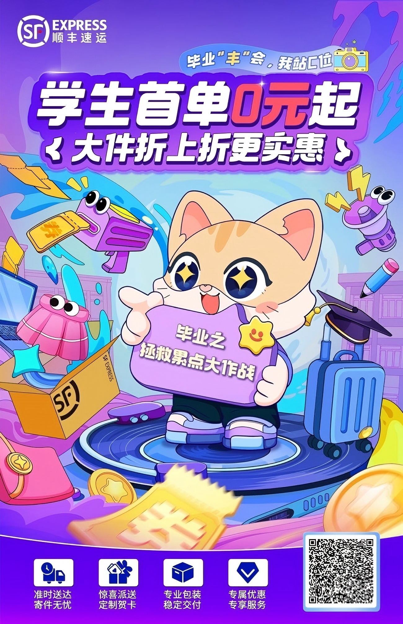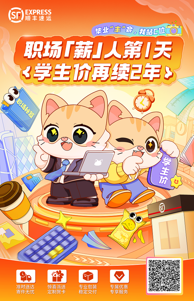顺丰深知毕业不仅是学业的终点,更是职场的新起点。为此,特别推出“毕业护航”权益,毕业生在离校后2年内,继续享受专属寄件优惠及服务,助力职场新人平稳过渡。