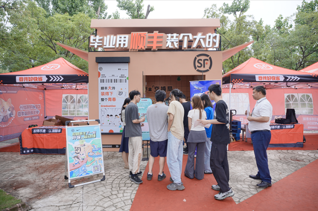 作为本次毕业季服务的创新亮点,顺丰将充满活力的快闪点直接“空降”至上海复旦大学、上海交通大学、上海财经大学、同济大学等知名高校校园内。这些精心设计的快闪点不仅提供便捷的寄件咨询和收件服务,更化身为毕业生的互动社交场。毕业生可携带一件有纪念意义的小物品“青春盲盒交换局”参与交换,为离校增添一份未知的惊喜与连接。“装下青春”打卡墙成为毕业生们记录校园时光最后剪影的热门地点,留下与青春、与同窗、与校园的专属记忆。