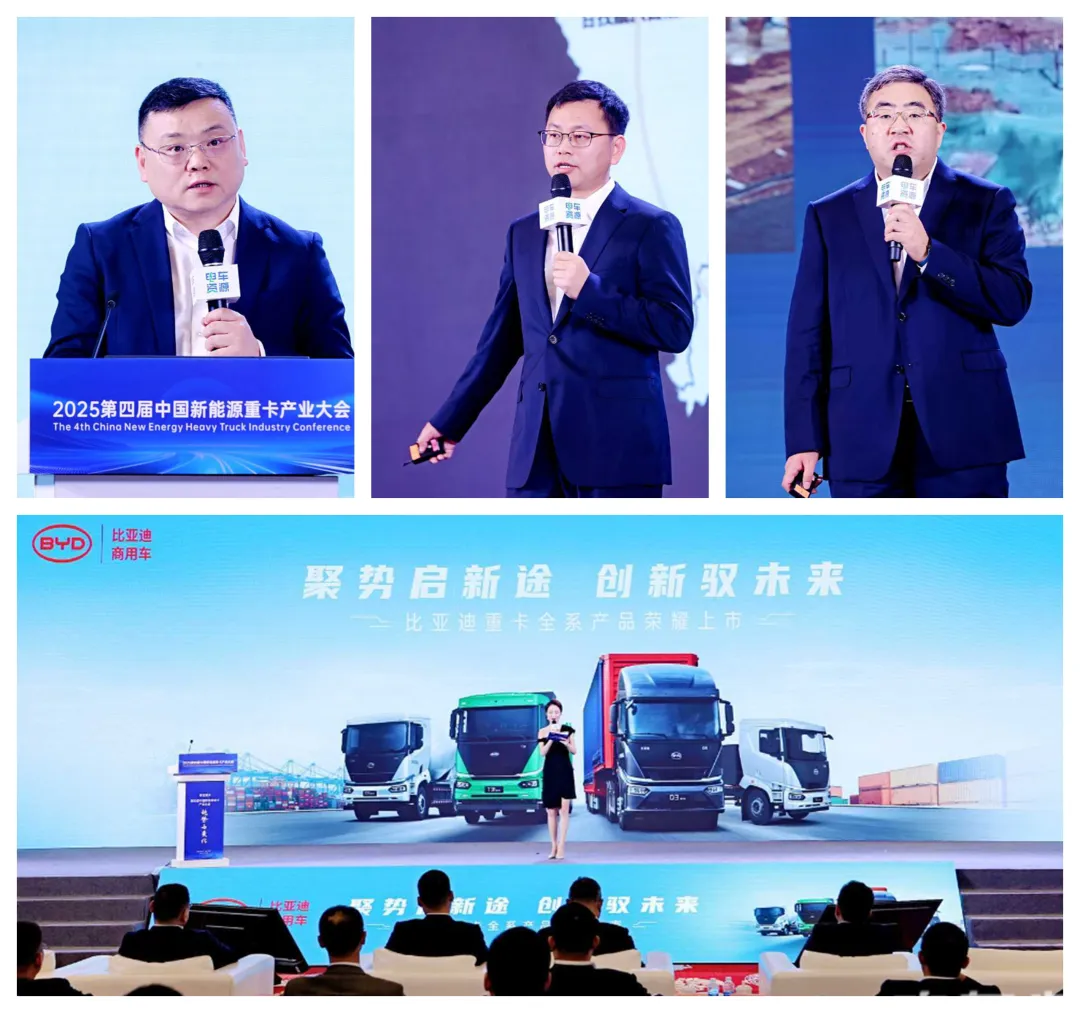 值得关注的是,比亚迪重卡全系产品上市发布会也在重卡产业大会中盛大举行,以“聚势启新途 创新驭未来”为主题,展示了比亚迪在重卡领域的创新成果和强大实力。比亚迪商用车事业部总经理田春龙致辞,阐述了比亚迪商用车全球战略布局,比亚迪商用车研究院重卡产品总监毛金星、比亚迪商用车研究院专用车产品总监李建分别分享了此次发布的比亚迪牵引车和专用车产品及全栈式整体3377体育的解决方案。