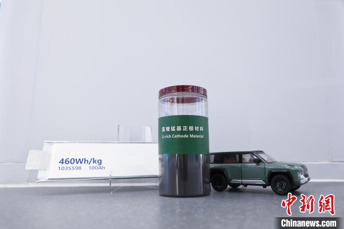 富锂锰基正极材料及基于富锂锰基正极和硅碳负极的高比能锂离子电池(图中车辆为模型)。中国科学院宁波材料所 供图