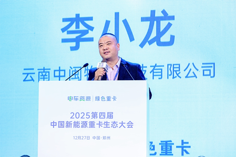 云南中闽物流科技有限公司总经理李小龙发表了《突围·精耕·跃升:新能源重卡运营的周期机遇与成长之道》的主题演讲。他预测,2026年新能源重卡销量将突破30万辆。