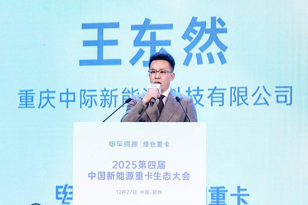 重庆中际新能源科技有限公司董事长王东然发表了《新能源重卡运营的“价值密度”革命:从单点突破到网络效应》的主题演讲。他指出,新能源重卡销量快速增长,渗透率持续提升。行业真正的挑战已从“车能不能造出来”转向“车能不能高效、经济、可靠地跑起来”。