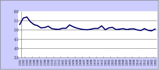 2023年1月-2026年3月综合pmi产出指数走势图