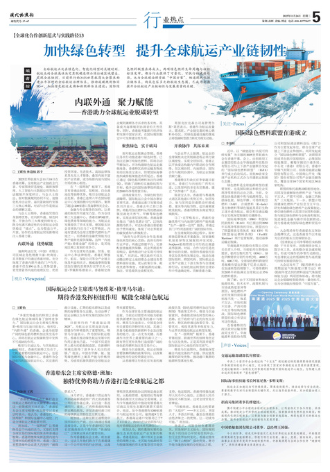 日前举行的“香港海运周2025”,为航运业实现高效沟通、搭建合作桥梁提供了重要契机。格里马尔迪表示,作为国际航运枢纽,香港在推动绿色航运发展中的作用正愈发凸显。“中国不仅是世界上最大的船舶制造国,在新燃料领域也取得了诸多令人关注的进展。”他说,中国在甲醇、氨、氢等绿色燃料上兼具产能与价格优势,为亟须拓展供需的全球航运业带来重要契机。