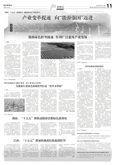 “十五五”规划建议提出,要“建设能源强国”,为我国能源事业高质量发展指明了方向。“十五五”成为能源体系深度重塑的重要窗口期,数字化、智能化、绿色成为是贯穿生产组织、系统运行和资源配置的整体性变革。一方面,人工智能等新技术不断提升能源预测、调度和交易能力,促进清洁能源高效消纳与资源优化配置;另一方面,在转型过渡期,煤炭仍是能源安全的重要支撑,能源大省通过推进智能绿色开采和产供储销体系建设,持续夯实保供和应急能力。安全托底与转型提速协同推进,勾勒出我国能源产业迈向高质量、可持续发展的现实路径。