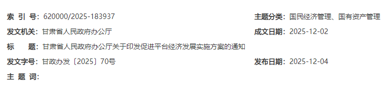甘肃省人民政府办公厅关于印发促进平台经济发展实施方案的通知-3377体育