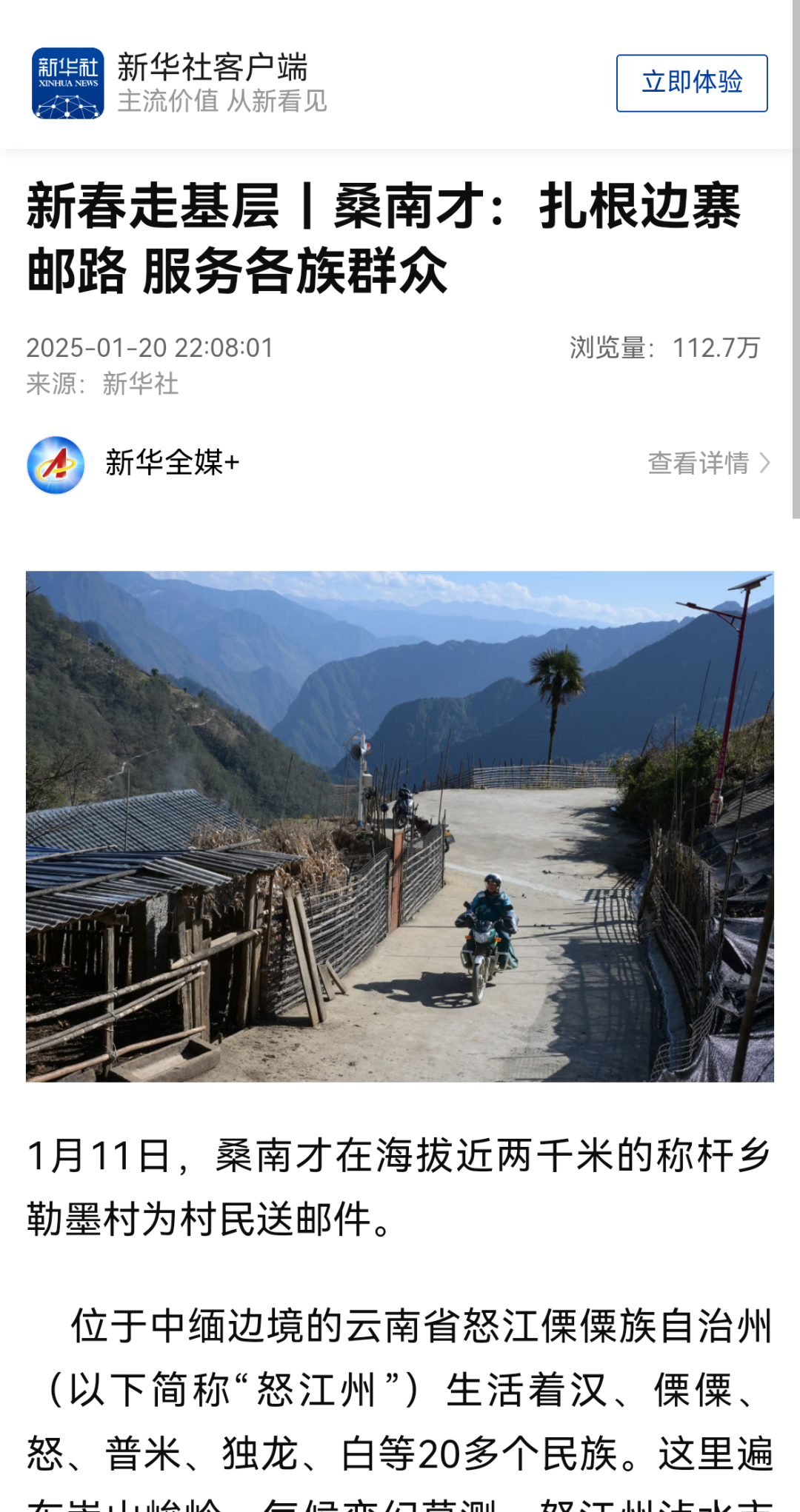 此次“新春走基层”活动,不仅是对桑南才个人事迹的宣扬,更是对我国经济社会发展成就的一次生动展示。通过媒体的镜头和笔触,让更多人了解到怒江这片土地的发展变化,感受到民族团结的强大力量,也看到邮政行业广大基层工作者为实现乡村振兴、建设美好家园所付出的努力。这些报道将为全国人民带来一份温暖与感动,营造出团结奋进、温馨和谐的浓厚节日氛围,激励着人们在新的一年里,携手共进,为实现中华民族伟大复兴的中国梦而努力奋斗。