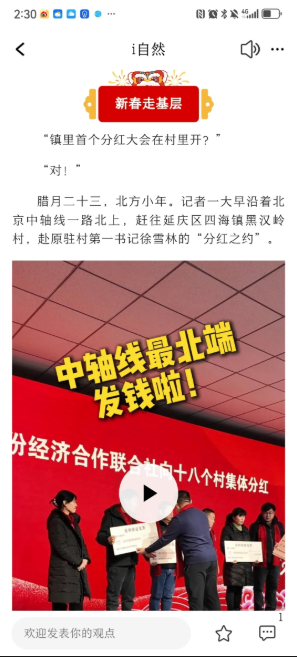 做“短、时、新”的新闻记录者。实现共同富裕,最艰巨最繁重的任务在农村。以记者第一视角推出的文字报道 短视频报道《北京中轴线最北端:首个“百万村”分红真“烧脑”!》,深挖首个“百万村”的首次“分红”,以谁来分红、谁领分红、分红哪来巧妙布局,生动展现了乡村振兴中的“共富路”。这一场记者与黑汉岭村的“分红之约”,现场感和故事性强,又富思想性、专业性,报网端推出后,在区、镇、村、行业内外广受好评,业内多位专家评价“特活深”,起到了良好的传播效果。