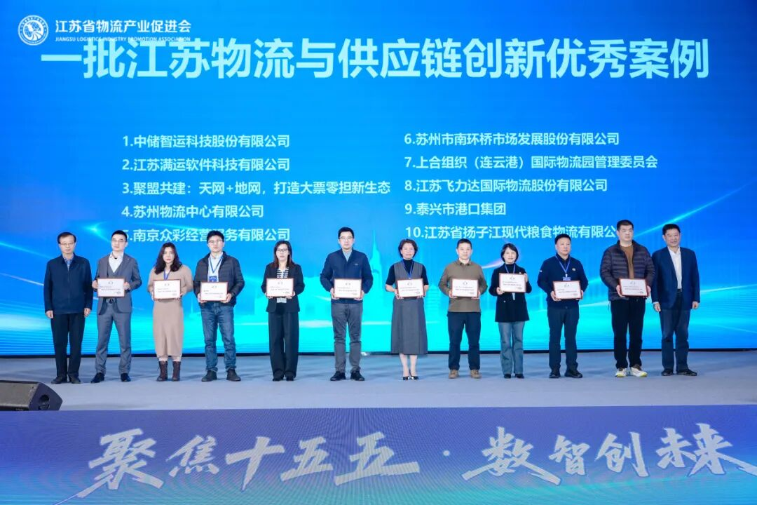 会上,周荣华发布2025年度江苏物流与供应链创新发展优秀案例,蔡进、周荣华为入选单位颁发证书。