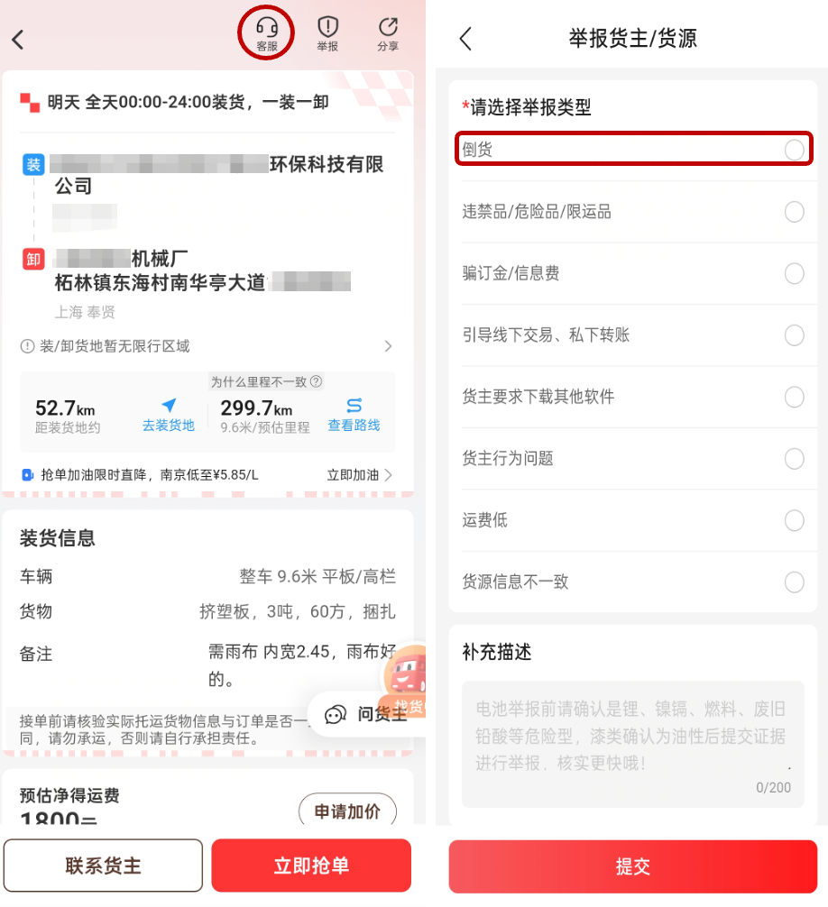 行动期间,平台披露多起典型案例。手机尾号1872的倒货者在3天内倒卖覆盖全国6省的20单高价货源信息,降价转发牟利,如原价3000元的订单被压至2600元发布,导致司机收入锐减,已被永久封禁;尾号7396的账号,5天倒卖5单广东至全国货源信息,品类涉及建材、日用品等,其中一单差价高达900元(广东至南通6900元货源信息被6000元转发),现已被平台拉黑。多名司机反馈:“倒货者抢单后两分钟就降价转发,我们累死累活却挣不到钱!”对此,运满满对提供有效线索的多名司机给予每人500元奖励。