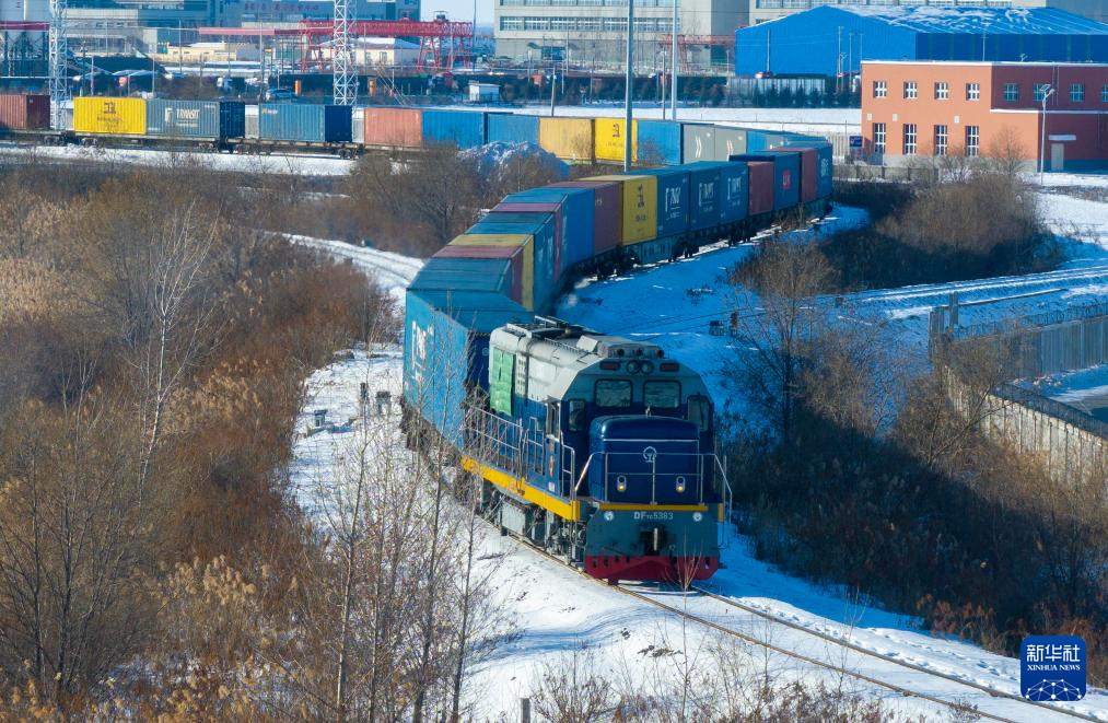 12月10日,伴随一列编组60辆,满载家用电器和数码产品的中欧班列驶出满洲里铁路口岸,今年中欧班列“东通道”通行班列数量已达5166列,运送各类货品超53万标准箱,为服务高水平对外开放提供了强劲动能。