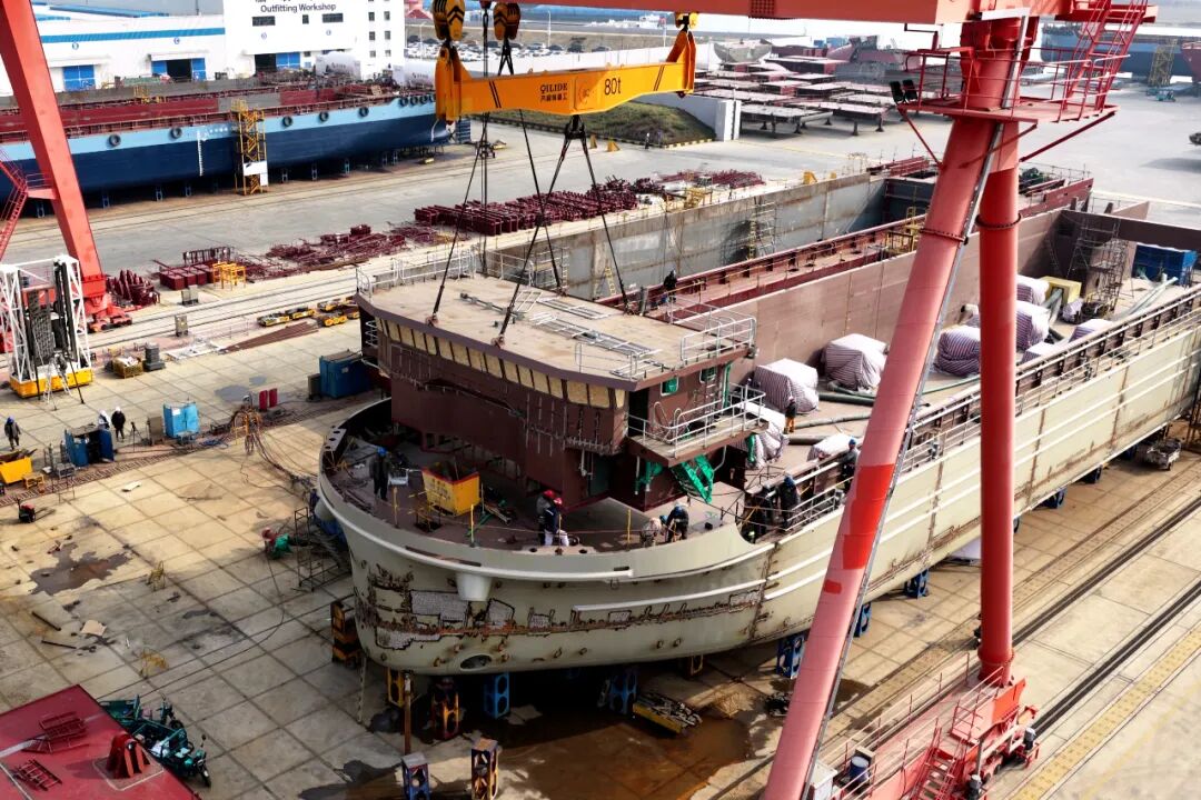 ·达飞182teu纯电动力集装箱运输船订单项目所有分段制作完工。