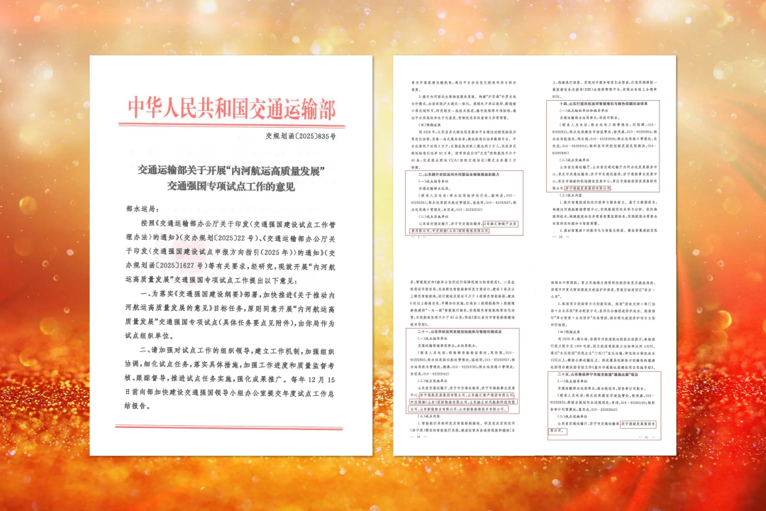 ·“京杭运河高效运输组织与智能航线试点”入选交通运输部 “内河航运高质量发展” 交通强国专项试点任务